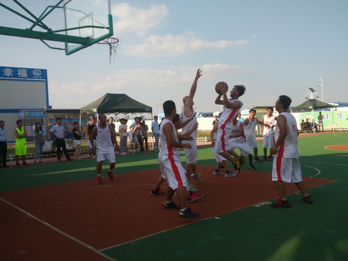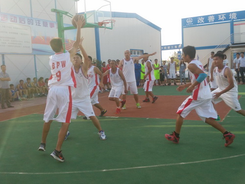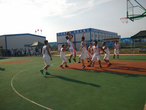在此次的比賽中,參賽的單位有監(jiān)理3標(biāo)中企建發(fā)、1標(biāo)中鐵十二局、4標(biāo)四川場(chǎng)道、3標(biāo)中國(guó)華西、5標(biāo)上海路橋、8標(biāo)中鐵航空港、10標(biāo)中水十六局、6標(biāo)甘肅機(jī)械化共8支籃球隊(duì)進(jìn)行參賽,建設(shè)單位也派隊(duì)參加,進(jìn)行友誼賽,我們跟兄弟單位中鐵航空港,上海路橋,中水十六局、四川場(chǎng)道一決高下,最后入圍四強(qiáng),在決賽的比賽中,我們?cè)俅斡鲆妼?shí)力強(qiáng)勁的中水十六局,雙方隊(duì)員在籃球比賽現(xiàn)場(chǎng)氣氛熱烈,隊(duì)員們積極進(jìn)攻,嚴(yán)密防守,精彩的配合,巧妙的搶斷,不時(shí)的將比賽氣氛推向高潮。天氣雖然炎熱,但絲毫沒(méi)有影響隊(duì)員的熱情,盡管兩支球隊(duì)都是業(yè)余籃球愛(ài)好者,但他們?cè)诒荣愔芯憩F(xiàn)出較好的團(tuán)隊(duì)協(xié)作能力,一群年輕人激情飛揚(yáng),帶球、傳球、搶斷、上籃,賽場(chǎng)對(duì)抗激烈,隊(duì)員個(gè)個(gè)揮汗如雨,最后在我方隊(duì)員的努力拼搏下,以32:30的比分,贏得第一。