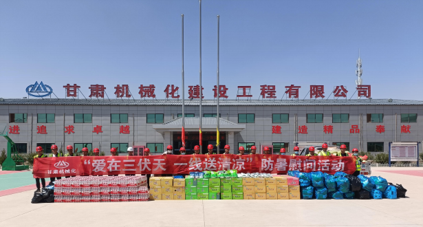 炎炎夏日,絲絲關(guān)愛。7 月 7 日下午由我司蘭州中川國際機場三期擴建工程項目部領(lǐng)導(dǎo)班子成員帶隊,開展“愛在三伏天, 一線送清涼”防暑降溫慰問活動,為高溫一線作業(yè)員工送上絲絲涼意。